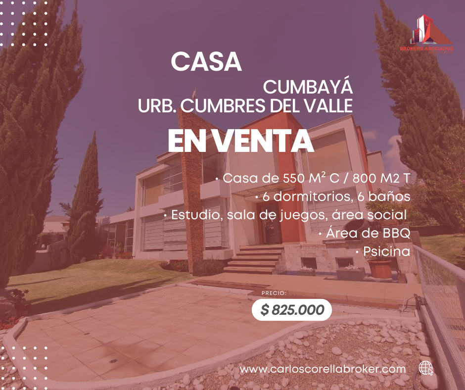 Vendo Casa en Cumbayá Urb. Cumbres del Valle, 550 M2 de construcción, 800 M2 de terreno. PRECIO $825.000