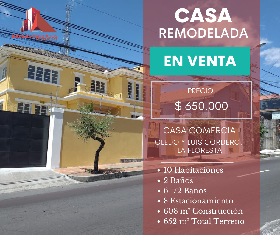 Venta Casa La Floresta Full Remodelada Construcción 608 M²,Terreno 652 m² $650.000