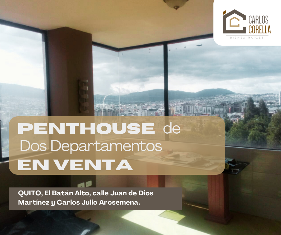 PENTHOUSE DE DOS DEPARTAMENTOS EN VENTA, QUITO EL BATÁN ALTO, ÚTIL 450 M², $400.000